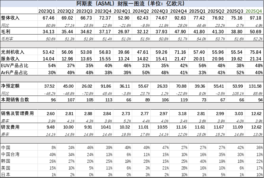 图:ASML财报汇总,来源:企业财报,锦缎整理