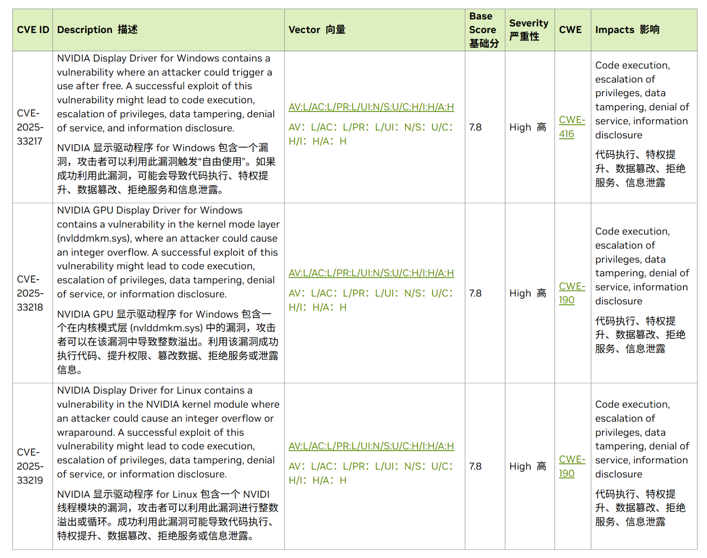 根据官方发布的“安全公告”,攻击者如果利用曝光的漏洞,可以在受害者的系统上执行恶意代码、非法提升系统权限、篡改敏感数据,甚至发动拒绝服务(DoS)攻击导致系统瘫痪。这些漏洞的严重程度均被评定为“高”级别。
