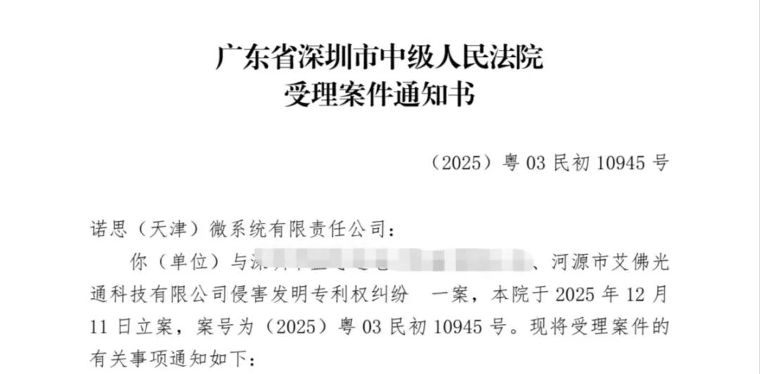 为严厉打击专利侵权行为,捍卫核心知识产权,我公司已向广东省深圳市中级人民法院对河源市艾佛光通科技有限公司等侵权主体提起侵害发明专利权诉讼,该案已获法院立案受理,相关司法程序正依法推进。