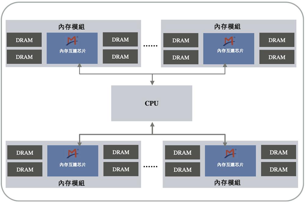 下图展示了计算机系统内存互连芯片如何与其他组件连接: