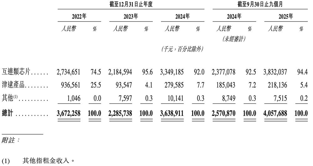 2023到2025年9月底,其超过90%的收入来自互连类芯片,增长主要得益于DDR5渗透率的提升,以及云计算及AI基础设施应用需求提速。