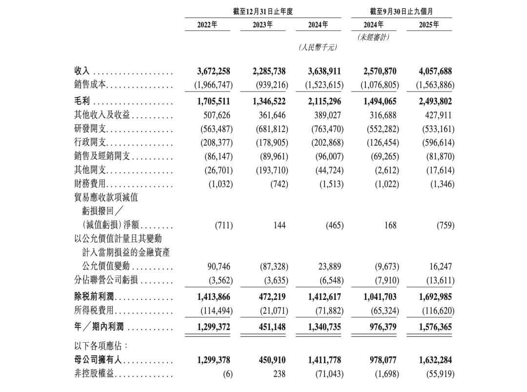 报告期内,澜起科技的营业收入分别约36.72亿、22.86亿、36.39亿、40.58亿元;毛利分别约17.06亿、13.47亿、21.15亿、24.94亿元,毛利率分别为46.4%、58.9%、58.1%、61.5%;净利润分别约12.99亿、4.51亿、13.41亿、15.76亿元;经调整净利润分别约14.51亿、5.74亿、14.00亿、21.09亿元,经调整净利率分别为39.5%、25.1%、38.5%、52.0%。