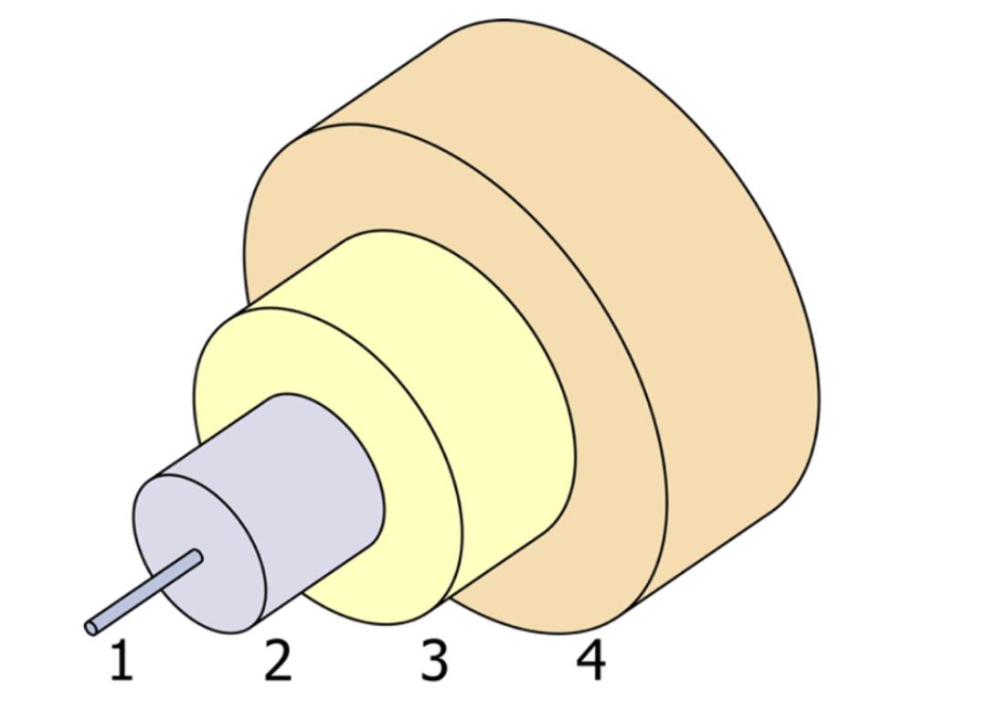 图 3:单模光纤电缆——实际光纤直径为 8-9毫米,电缆直径为 2-3 毫米
