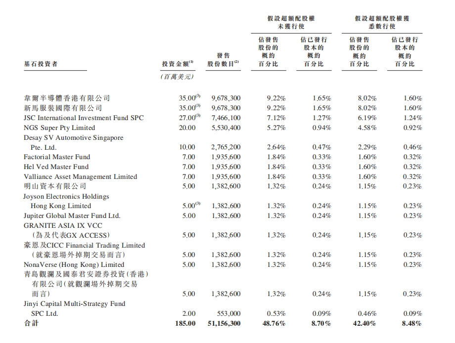更重要的是,公司引入包括产业资本、一线机构、地方国资等多元化的基石投资者,累计认购1.85亿美元,认购比例高达48.76%,豪华的基石阵容不仅提供了产业背书,也锁定了二级市场初期的流动性筹码,弱化了公司上市后股价的非理性波动风险,为投资者提供安全边际。
