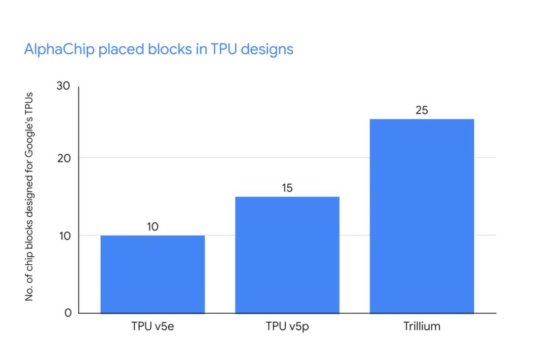 TPU每一次迭代,AlphaChip参与的芯片区块就越多,图源:Google