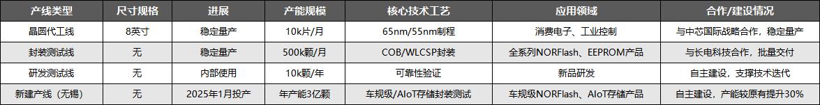 无锡新产线的投产是公司未来增长的核心产能支撑,主要生产车规级NORFlash和AIoT存储产品,精准匹配新能源汽车、物联网等高增长需求,投产后将大幅提升公司中高端产品的供应能力。