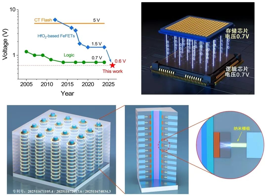 目前,基于这项新机理已率先申请兼容业界 NAND 结构和嵌入式 SOC 架构的关联专利集合,形成具有完全自主知识产权的“纳米栅超低功耗铁电晶体管”结构和工艺技术体系 (中国专利:202511671105.4 / 202511672017.6 / 202511674034.3),将助力我国在新型存储领域打破国外技术壁垒。
