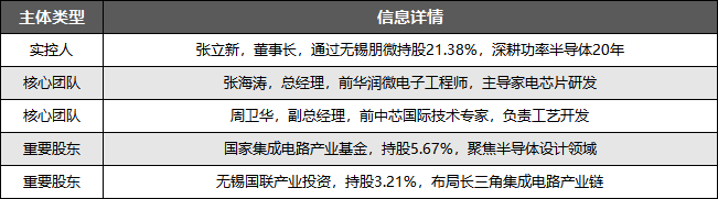 实控人张立新的行业深耕经验保障了公司战略的稳定性与技术路线的连贯性;核心团队均来自华润微、中芯国际等头部企业,强化了研发端的技术优势;国家集成电路产业基金与无锡国联产业投资的入股,不仅为公司提供资金支持,更带来产业链资源整合优势,助力公司拓展新能源汽车等新兴领域,与公司“聚焦功率半导体、替代进口、拓展高端市场”的战略高度适配。