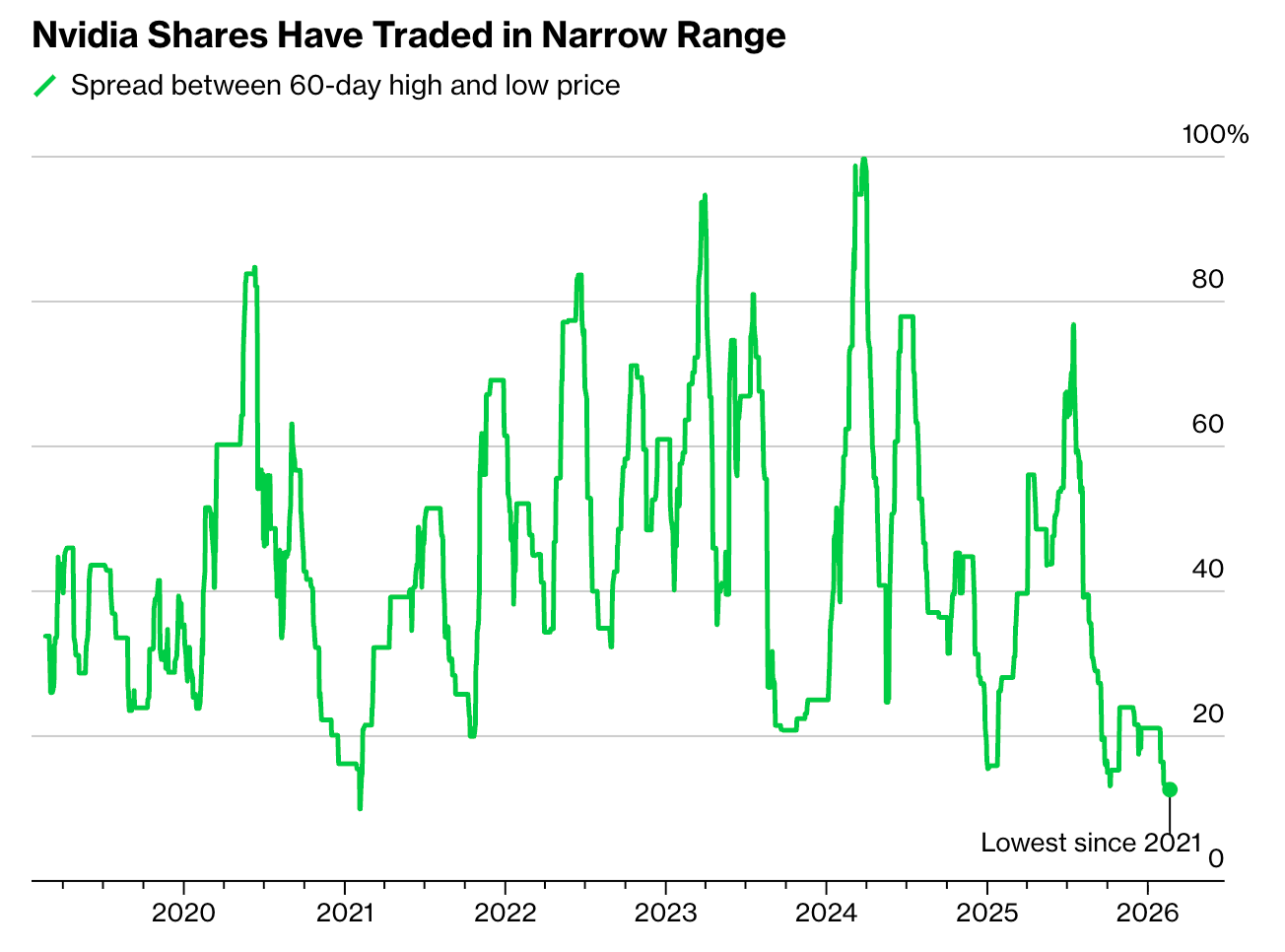 陷入这种困境的并非只有英伟达。作为过去几年股市上涨的最大贡献者,“科技七巨头”数月来也一直停滞不前。彭博一个追踪这些公司的指数自第四季度初以来已下跌近1%,表现逊于同期标普500指数。