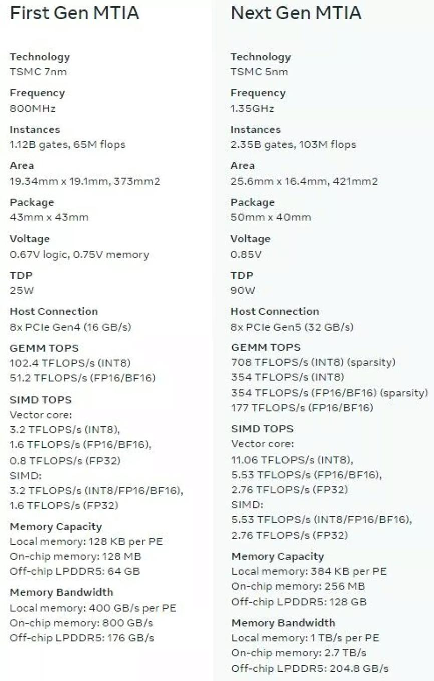 相关资料显示,该公司于 2020 年开始定制芯片研发,并于 2023 年 5 月推出了 Meta 训练和推理加速器 (MTIA:Meta Training and Inference Accelerator) v1。事实上,这款芯片名称并不贴切,因为它只能进行推理,而不能进行训练。