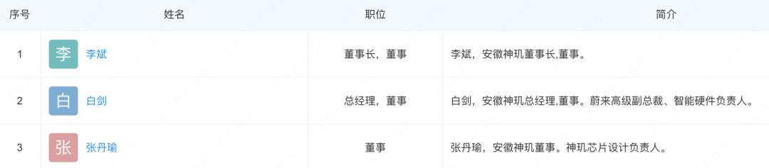 该公司核心人员包括董事长李斌、总经理白剑、神玑芯片设计负责人张丹瑜。李斌是蔚来创始人、董事长、CEO,白剑是蔚来高级副总裁、智能硬件负责人。