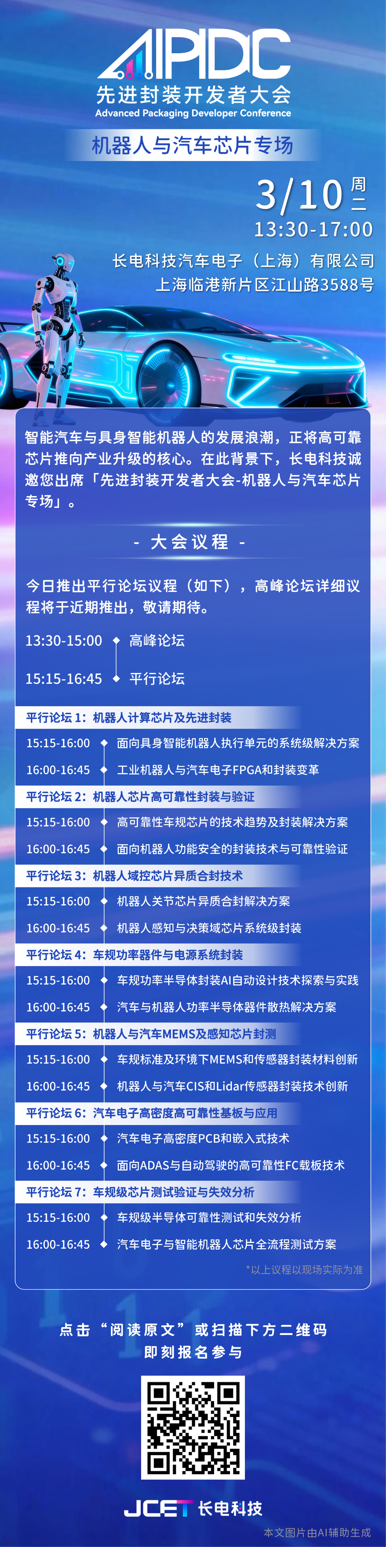 1.长电科技邀您共赴3.10先进封装开发者大会——机器人与汽车芯片专场