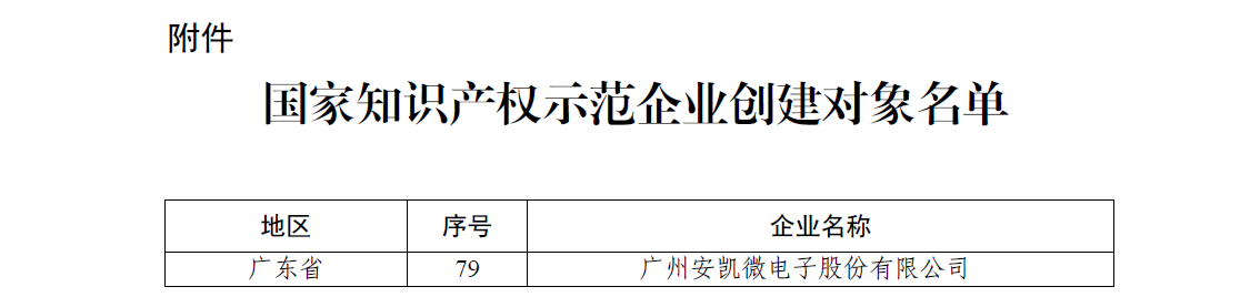 2026年2月28日,国家知识产权局正式公布了2025-2027年国家知识产权强国建设示范创建对象名单,安凯微(股票代码:688620)成功入选。此次入选,是公司继2023年获评“国家知识产权优势企业”后在知识产权领域取得的又一重要里程碑式提升,是对公司自主研发创新能力和知识产权综合能力的充分肯定,标志着公司知识产权工作迈入国家级示范建设新阶段。