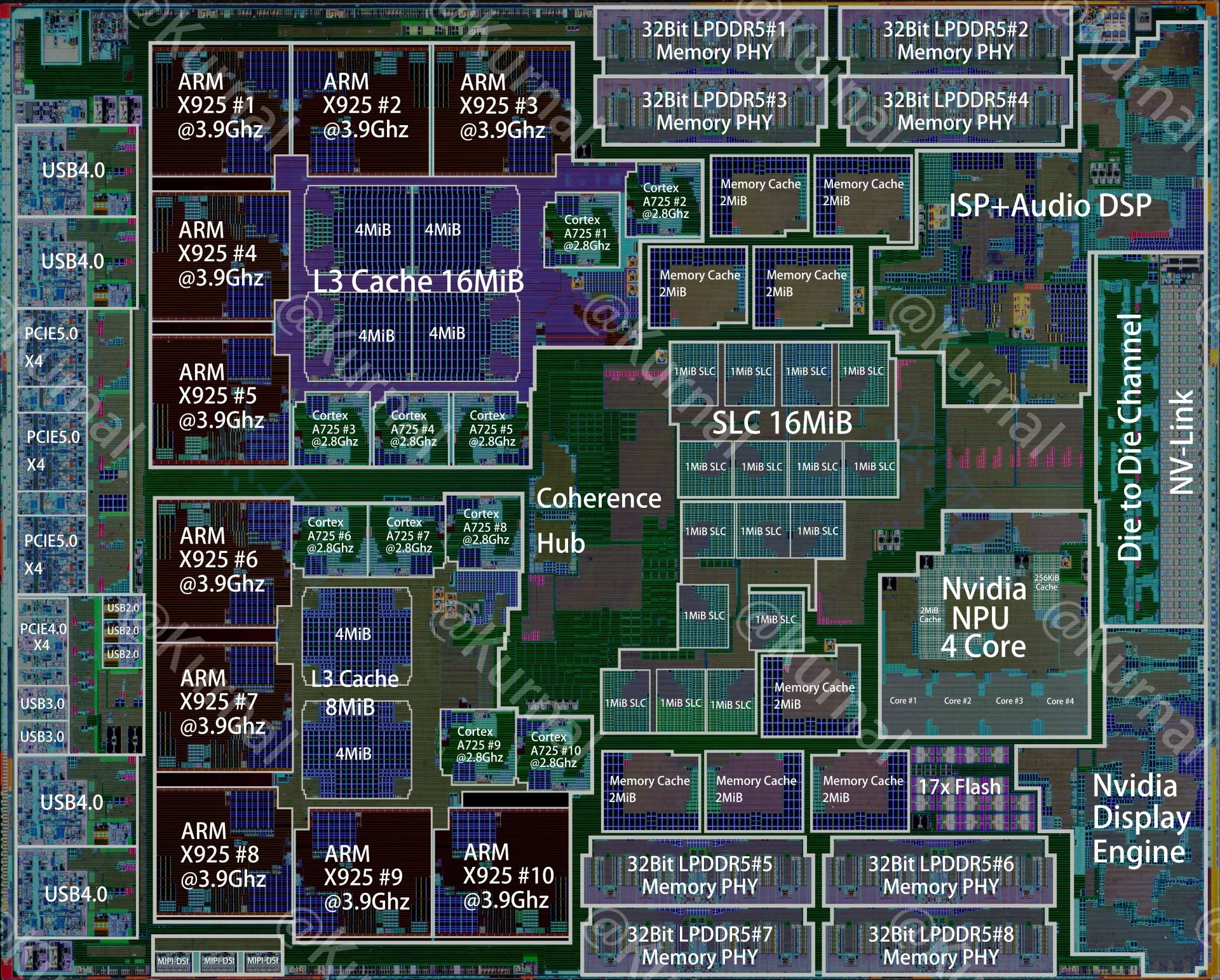 IT之家 3 月 5 日消息,消息源 @Kurnalsalts 携手 @SemiAnalysis 昨日(3 月 4 日)在 X 平台发布推文,分享了英伟达 GB10 芯片的 Die-Shot 图,并详细标注相关细节。