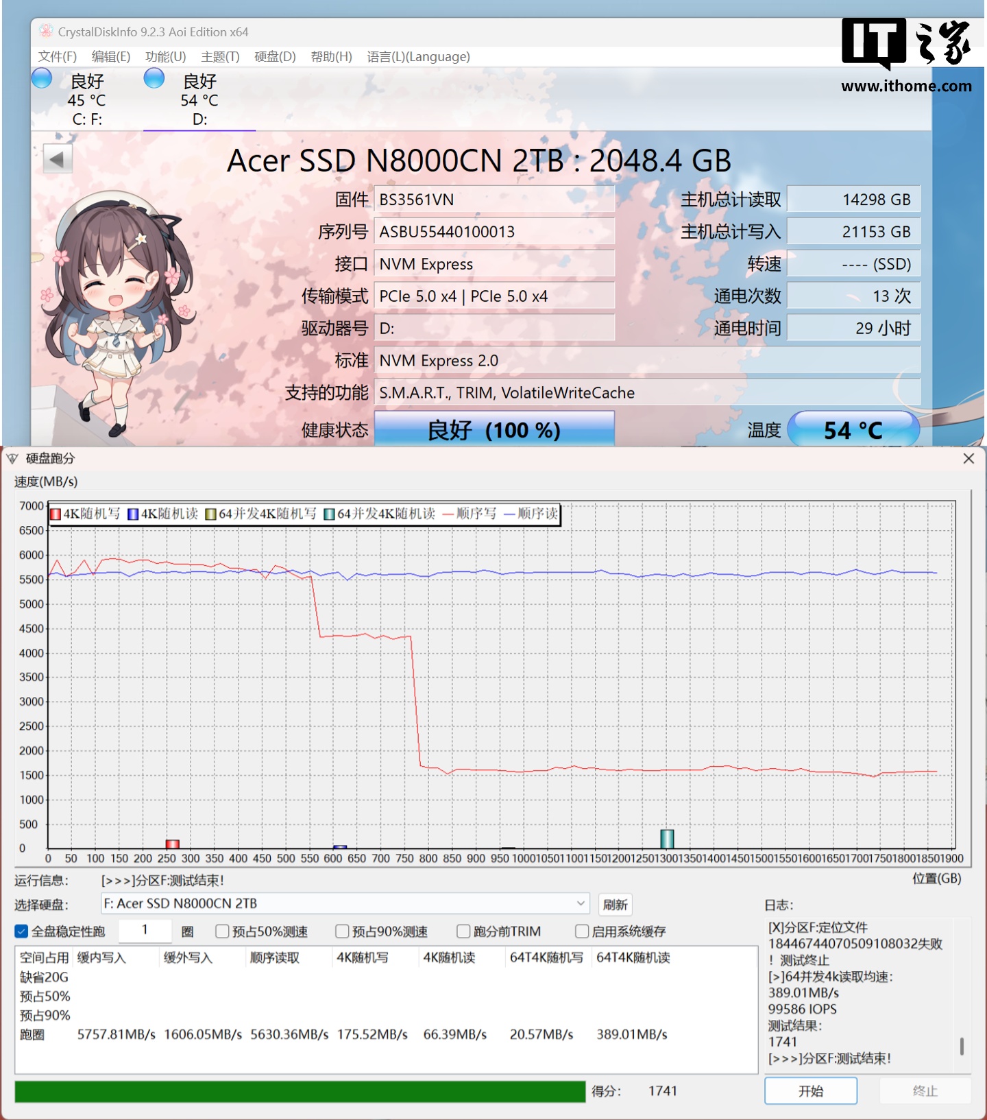 为了进一步探究宏碁 N8000 在极限连续写入与脏盘状态下的真实表现,IT之家使用了白眼 2.5 软件进行高压测试。
