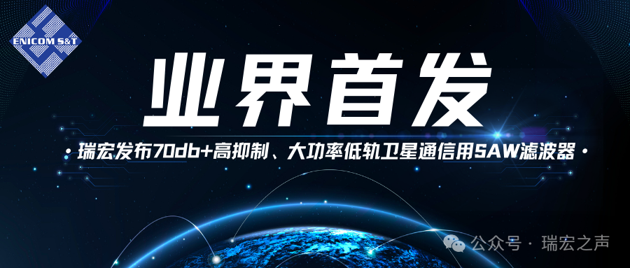 3.业界首发——瑞宏发布70db+高抑制、大功率低轨卫星通信用SAW滤波器;