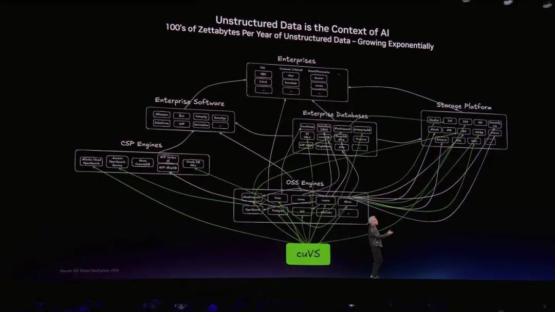 而针对非结构化数据,英伟达掏出了第二把杀器,针对向量数据库和非结构化数据的 cuVS。有了这两个底层库,英伟达实际上是捏住了全球数据处理的咽喉,它正在用 AI 的方式,重新定义企业到底该怎么处理数据。