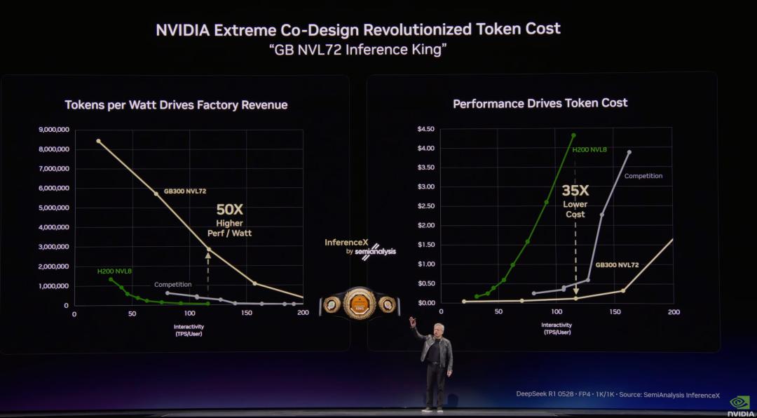 2)性能和成本:在tokens/watt(吞吐量)和token速度(智能度)两个维度上,英伟达均为全球最高性能;英伟达的token成本全球最低。