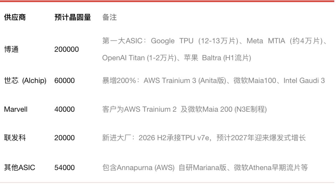 第一是博通领衔的定制芯片(ASIC)阵营,可以说是几乎所有大客户“叛逃”的技术后台。谷歌的TPU、Meta的MTIA、OpenAI即将推出的自研芯片Titan,背后都有博通的身影。