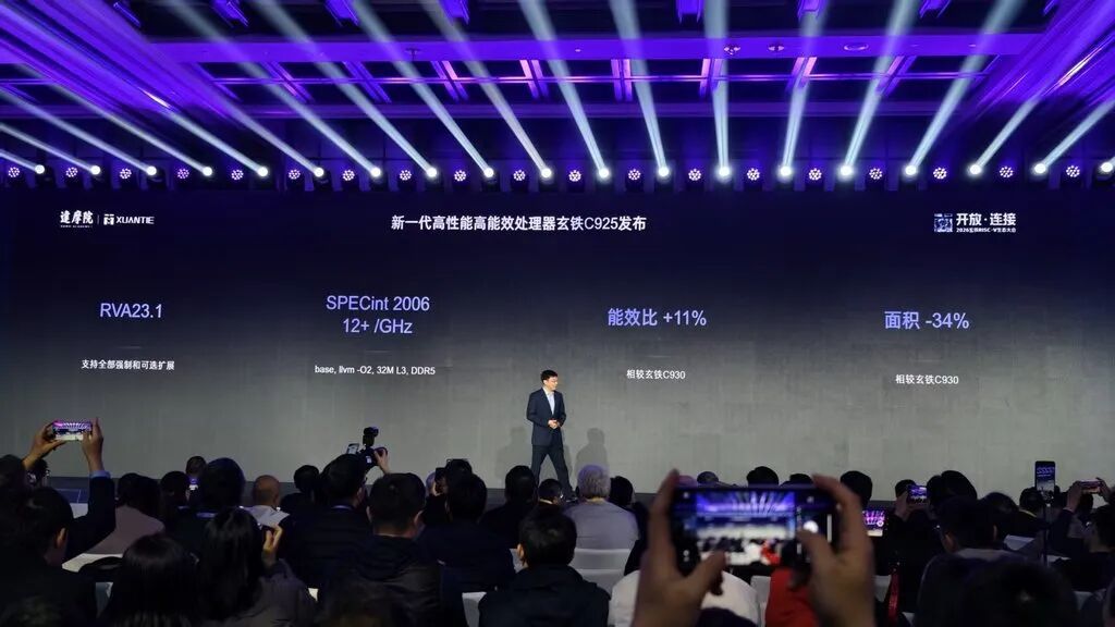 阿里达摩院还发布了新一代高性能高能效处理器玄铁C925,SPECint2006性能得分超过12/GHz,能效比相较玄铁C930提升11%。