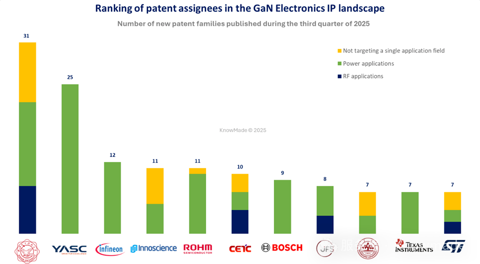 2025年Q2、Q3全球GaN领域专利布局数据分析(数据来源于KnowMade)