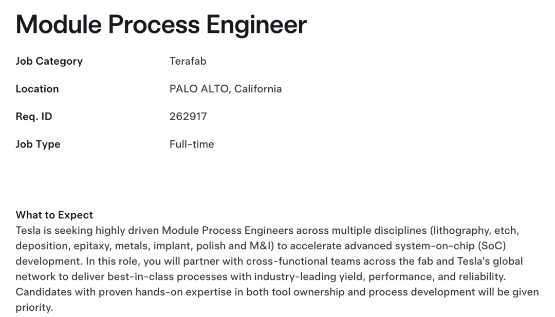 德州奥斯汀这边则在招硅工程师(Silicon Engineer),以及一名需要有“1亿美元以上资本项目”管理经验的技术项目经理(Technical Program Manager)。