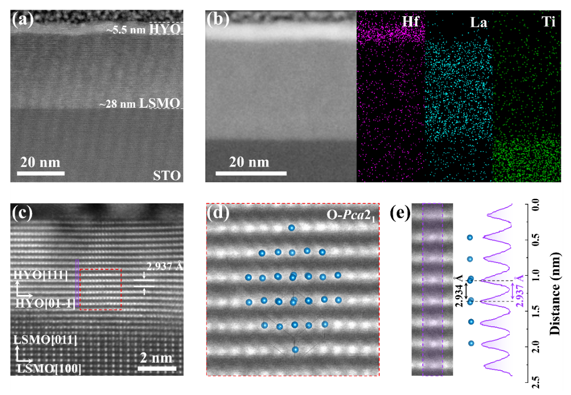 随着人工智能(AI)、大数据、云计算为代表的新型信息技术飞速发展,传统冯·诺依曼计算架构面临的“功耗墙”与“存储墙”问题日益凸显。神经形态计算作为一种模拟人脑神经工作模式的新型计算范式,被视为突破这一瓶颈的核心方向。其中,铁电隧道结(Ferroelectric Tunnel Junctions, FTJs)由于具有尺寸小、非破坏性读取、多级电导调节、超低功耗等特性在下一代神经形态存储器件中脱颖而出。相较于传统的钙钛矿型铁电材料,具有萤石结构的铁电HfO2不仅与Si基CMOS工艺兼容,而且在缩小到纳米尺度也能保持优异的铁电性而备受关注。然而用于神经形态器件的外延铪基FTJs仍面临诸多挑战,其关键难点在于阐明掺杂氧化铪薄膜的结构与铁电性的关联,以及提高铪基FTJs电导调节的线性度和对称性。