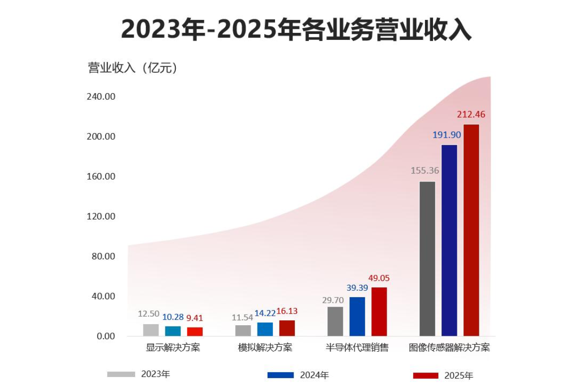 受益于此,豪威集团核心的半导体设计业务实现销售收入238.00亿元,占主营业务收入的82.60%,较上年增加9.98%;其中,图像传感器解决方案业务营收212.46亿元,占主营业务收入的73.73%,同比增加10.71%,成为营收增长的核心支柱。