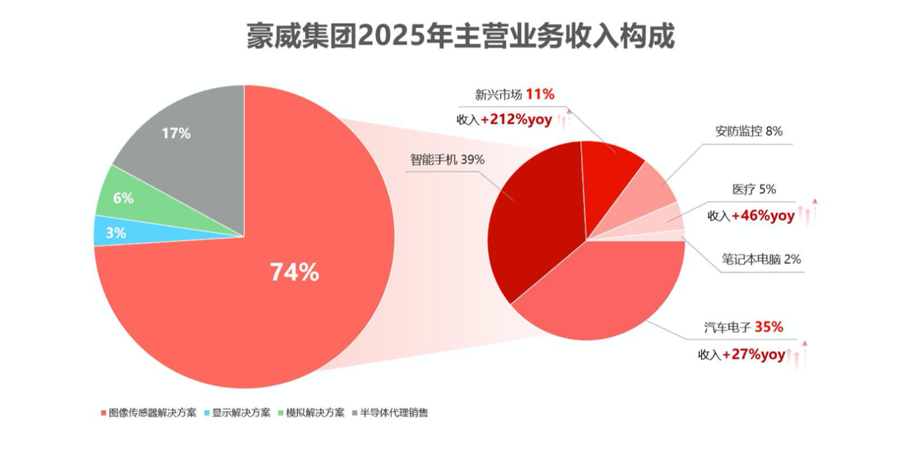 作为豪威集团CIS业务的核心基本盘,智能手机领域表现疲软,成为业绩的主要拖累。2025年,图像传感器业务中来源于智能手机市场的收入同比下降了15.61%。