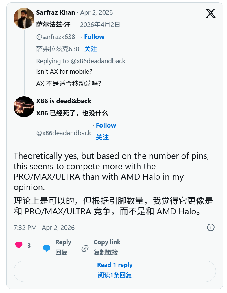 在工作场景方面,该媒体指出货运日志表明 Nova Lake-AX 可能不仅限于传统笔记本电脑援引,可能代表一种工作站级的可插拔 APU,甚至可能与 PRO / MAX / ULTRA 级别产品竞争。