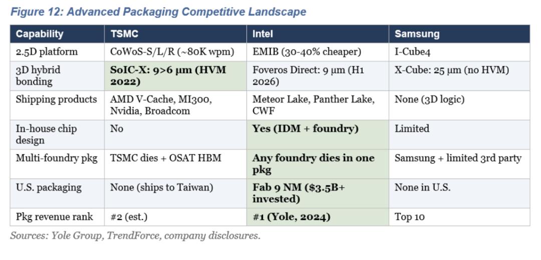 英特尔设计芯片,自主生产,拥有最广泛的封装产品组合,为外部代工厂封装芯片,并运营着美国唯一的高产能3D封装工厂。这种良性循环已经开始运转:内部产品验证了封装技术的成熟度,成熟的产品吸引了外部客户,每个客户都分摊了研发成本,更优的经济效益为下一代产品的研发提供了资金。