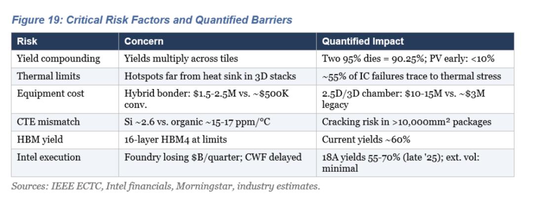 谬误二:外部客户数量。英伟达的交易要到2027年底才能交付。如果英特尔在2026年底前无法宣布至少两项价值数十亿美元的额外封装协议,那么这个论点进展太慢。CoWoS的限制窗口并非永久性的。