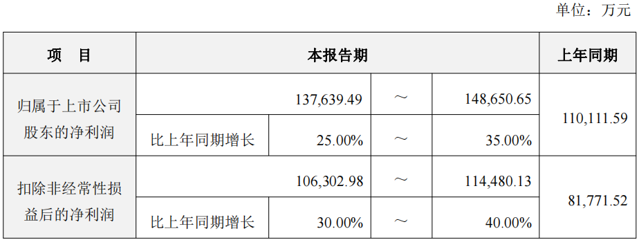 同时,公司预计扣除非经常性损益后的净利润为10.63亿元至11.45亿元,较上年同期增长30%至40%。