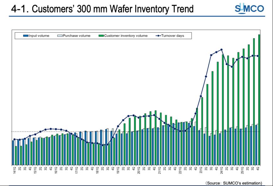 300mm硅片的客户库存趋势(图源:SUMCO 2025年财报)