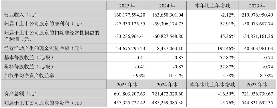 郑州天迈科技股份有限公司(股票代码:300807,简称:天迈科技)4月13日发布2025年年度报告。报告显示,公司全年实现营业收入1.6亿元,同比下降2.12%;归属于上市公司股东的净利润为亏损2793.01万元,但同比大幅减亏52.91%;扣非净亏损为3323.7万元,同比减亏45.36%。