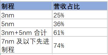 台积电Q1的3nm制程贡献了25%的晶圆营收,5nm贡献36%,两者合计61%,较上季度合计约53%的水平大幅提升。