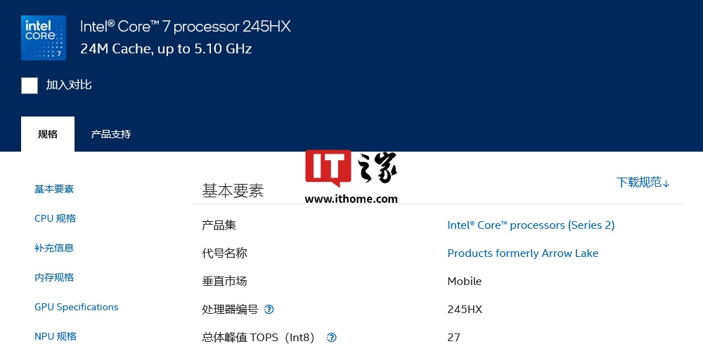 而根据IT之家的今日发现,英特尔上季度还推出了酷睿 7 245HX。这款处理器是货真价实的 "Arrow Lake",规格与 6P + 8E 的酷睿 Ultra 5 235HX 完全一致,但不知为何被算在酷睿 200 而不是酷睿 Ultra 200 中,与其它 "Arrow Lake" 在命名上存在割裂。