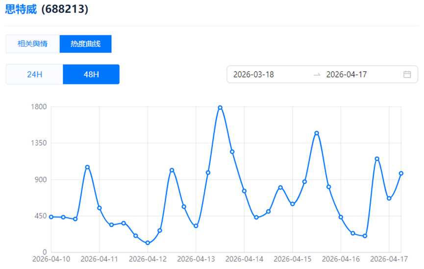 纳芯微:4月16日宣布推出新一代隔离式CAN收发器NSI1150,支持±70V总线保护耐压和更高通信速率,技术迭代推动其热度上升63名。