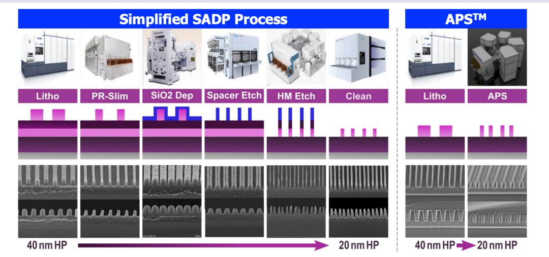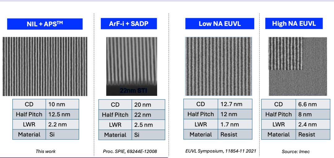 APS是纳米压印光刻(NIL)的强力补充,可以扩展密集的线条图案分辨率。可以作为传统多重图形化技术(如 SADP、SAQP 和 LELE)的替代方案,具有降低成本、提升分辨率和更好可持续性的潜力。