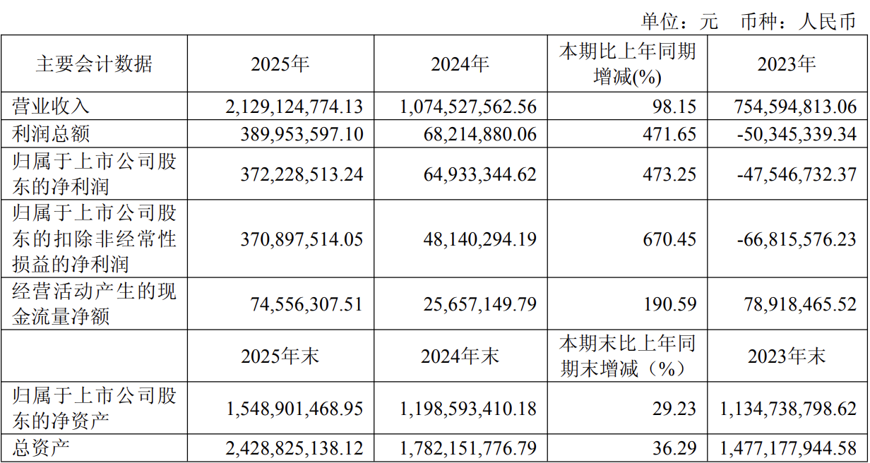 C114讯 4月20日消息(颜翊)上周五,仕佳光子发布2025年年度报告。报告期内,公司实现营业收入21.29亿元,同比增长98.15%;归属于上市公司股东的净利润为3.72亿元,同比增长 473.25%;扣除非经常性损益后的净利润为3.71亿元,同比增长670.45%。