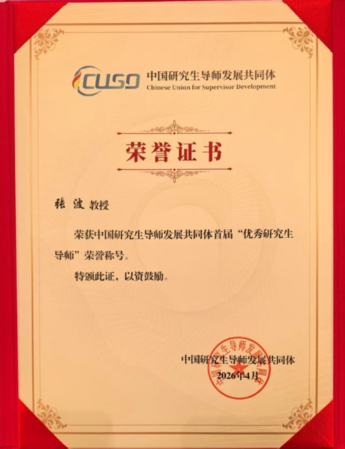 张波教授获评中国研究生导师发展共同体首届优秀研究生导师