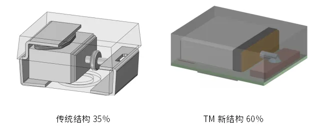 TM系列新结构体积利用率比传统结构高25%,因此,产品可实现小型化、薄型化。