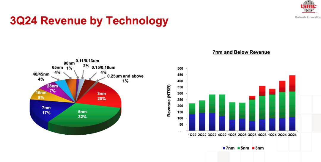 不过据《电子时报》报道,凭借3纳米和5纳米这两个高端制程,台积电有望在前三季度创造约1万亿新台币(310亿美元)的营收。2024年前三个季度台积电的收入总计新台币20,258.5亿元,比2023年同期增长 31.9%。