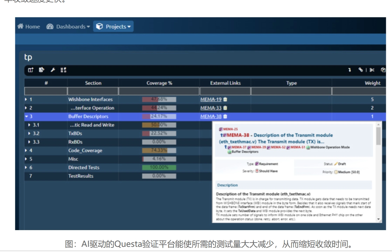 AI可以用于构建新的流程和能力,用于实现对数据的全新理解,使得能够做出以前未知但有价值的权衡,也可以用于更高效地执行EDA领域中的现有任务。例如,Questa Verification IQ数字验证工具套件,使覆盖率收敛速度更快.