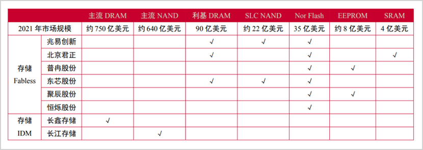 ▲中国大陆存储芯片厂商产品布局,来源:山西证券
