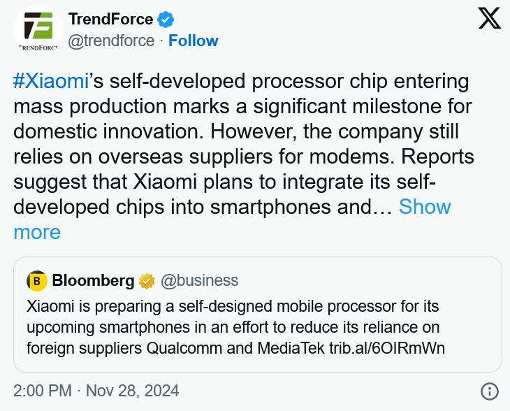 小米公司的一个重要里程碑是在 2025 年某个时候发布其用于智能手机和平板电脑的定制 3 纳米芯片,这标志着又一家中国公司将首次发布完整的核心解决方案,而且还是采用最先进的光刻技术,但随着当选的特朗普政府很可能继续向中国抛出禁令,限制其在技术领域的进步,这项事业可能会面临许多挑战。