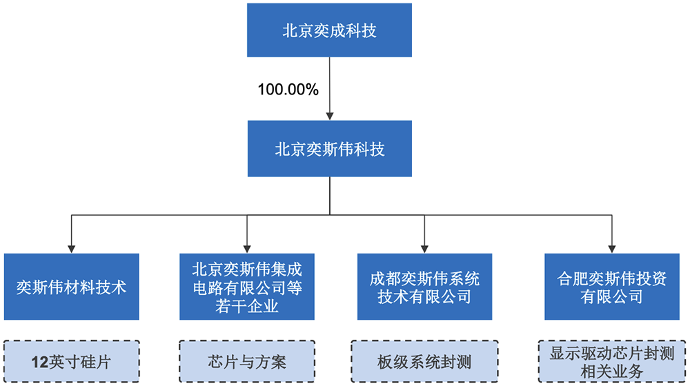 同时,北京奕成科技更名为“北京奕斯伟科技集团有限公司”(即“奕斯伟集团”),至此奕斯伟集团“创立”。而后整体分立,奕斯伟计算承接芯片与方案业务,奕斯伟系统技术承接板级系统封测业务,奕斯伟封测技术承接显示驱动芯片封测相关业务,其余分立前业务(12英寸硅片业务)由存续主体北京奕斯伟科技承接,从而北京奕斯伟科技为奕斯伟材料有限的法人主体前身。