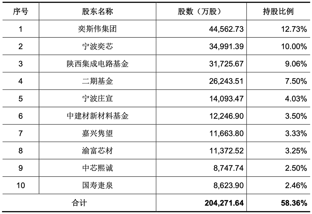 本次发行前,控股股东奕斯伟集团直接持股比例为12.73%,与一致行动人宁波奕芯和奕斯欣盛、奕斯欣诚和奕斯欣合三个员工持股平台合计持股比例为24.93%,不足30%。