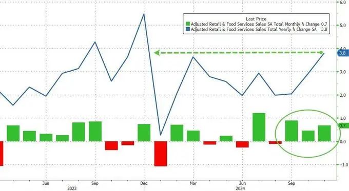 与此同时,投资者还在评估11月零售销售数据,以洞察消费者和经济的健康状况。在强劲假日支出的推动下,零售额增长了0.7%,高于预期的0.6%的环比增幅。