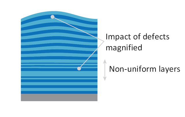 图1:3D NAND堆栈的平面性和均匀性较差。来源:盛美半导体